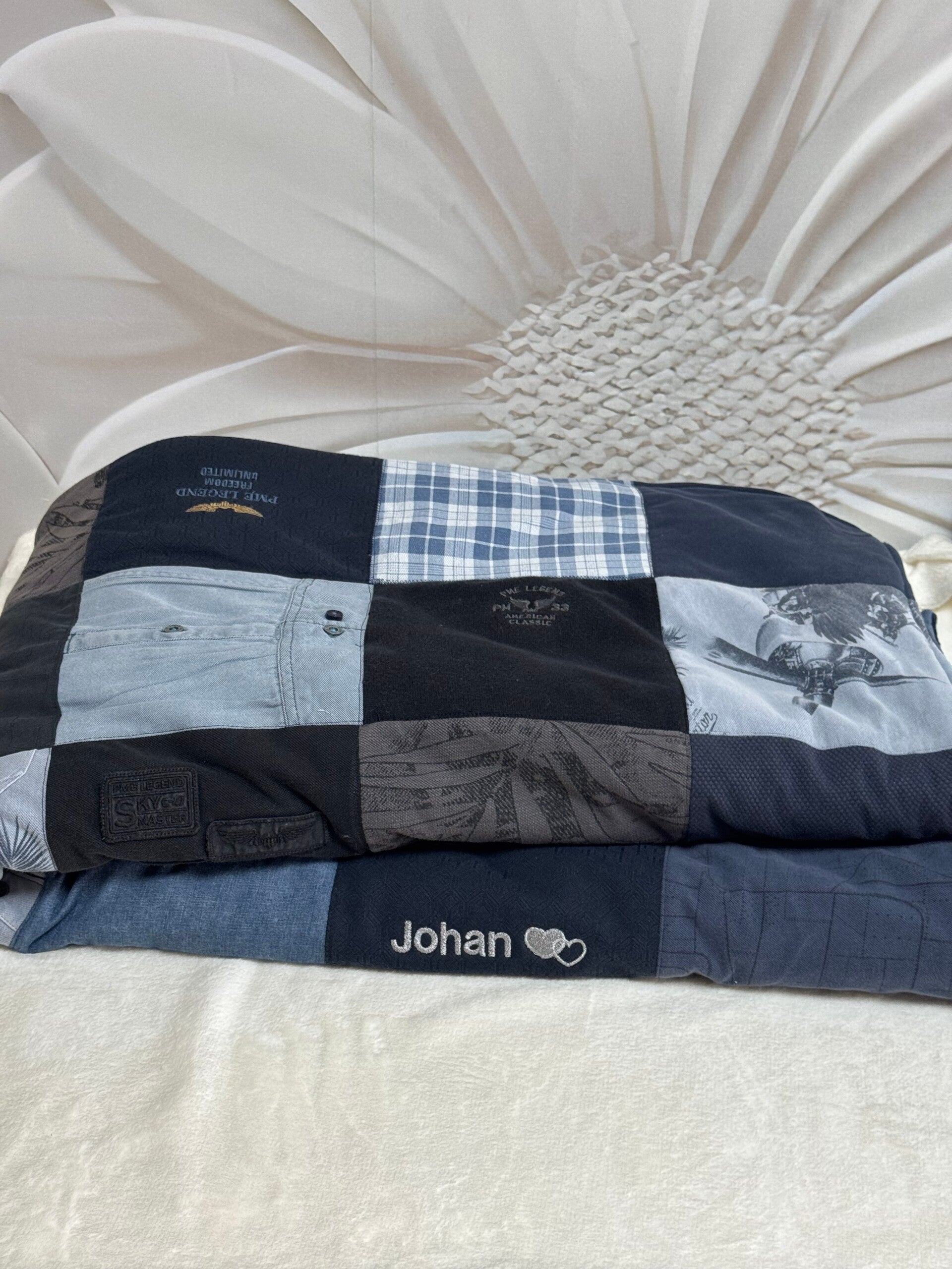 Een deken vol herinneringen.... waar ieder stukje stof zijn verhaal vertelt. Een mooi manier om herinneringen op te halen.