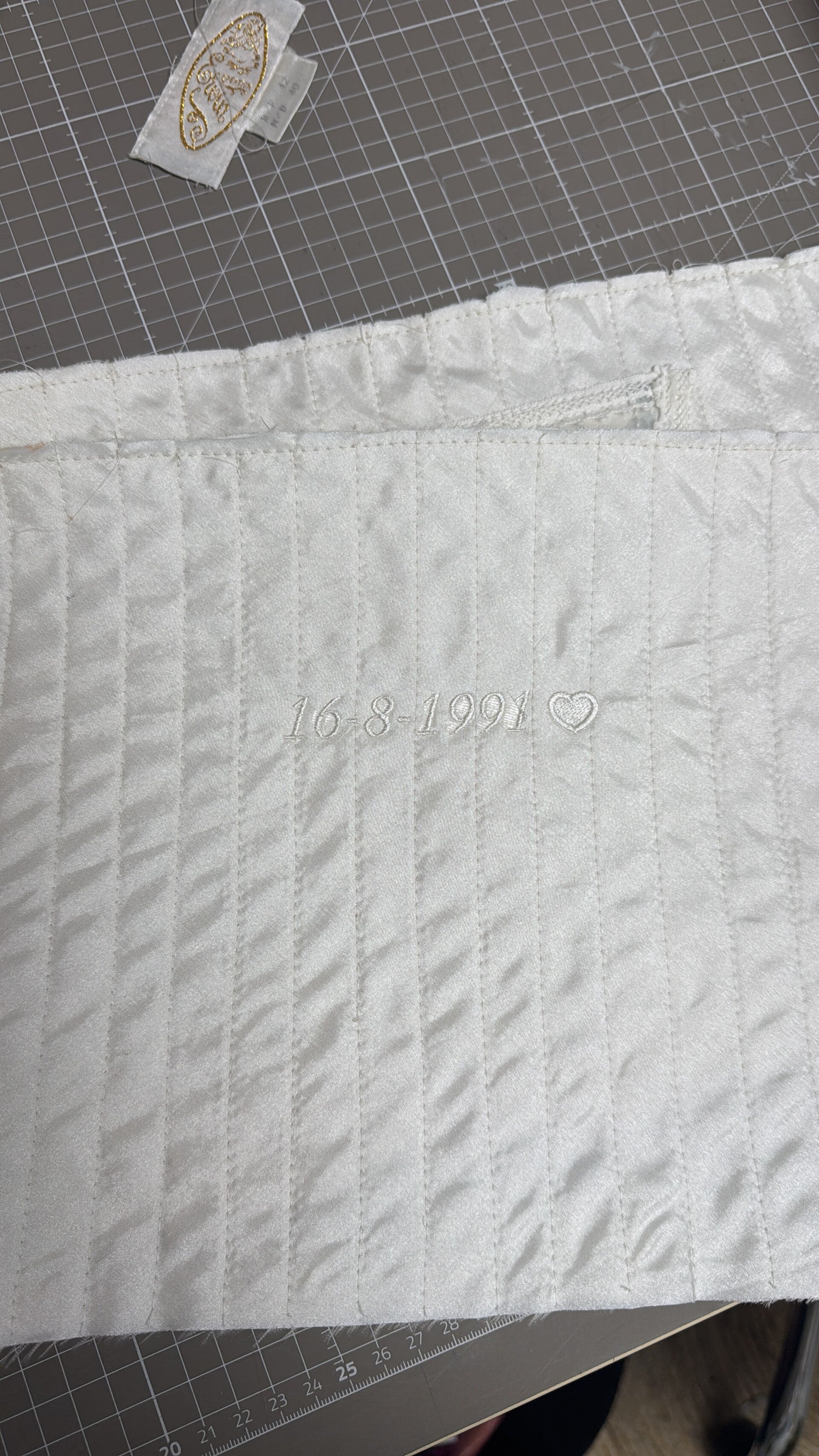 Zo bleef haar trouwjurk niet in de kast hangen, maar werd het een tastbare herinnering die ze kan doorgeven aan haar (klein) kinderen.