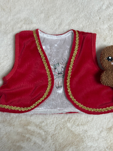 Warm, zacht en perfect voor de feestdagen. Dit rode giletje is zo'n waar je meteen blij van wordt. Gemaakt van zacht rode velours, comfy voor kindjes en ideaal voor kerstfoto's, kerstfeestjes.